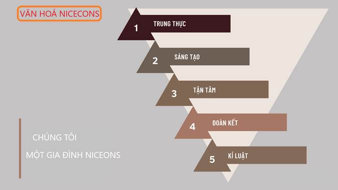 Đây không đơn thuần là phương châm phục vụ khách hàng mà còn là văn hóa làm việc tại ngôi nhà Nicecons. Chúng tôi tập trung đầu tư về con người. Từng thành viên được rèn luyện mỗi ngày để hướng tới những giá trị tốt đẹp: biết ơn, chia sẻ, chính trực, khiêm tốn. Cùng với các buổi chia sẻ, 45 phút mỗi ngày cho cafe và đọc sách là cách để Nicecons bồi dưỡng trí tuệ, lòng yêu thương, từ đó lan toả năng lượng tích cực đến mọi người xung quanh.